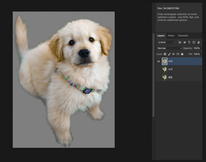먼저, 털같이 아주 섬세하게 작업이 들어가야 하기에 저는 강아지 이미지를 준비했습니다.