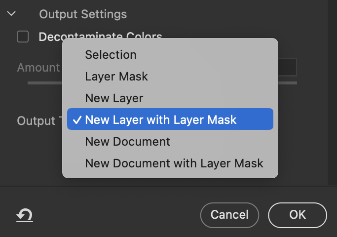 Select and Mask 공간에서 모든 작업이 끝나면 출력하는 형태를 지정해 주는 것인데요!